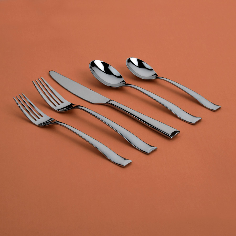 We purchased two sets of the Soprano silverware (45 pieces) and have been happy so far. They don't spot, and the shape is lovely.